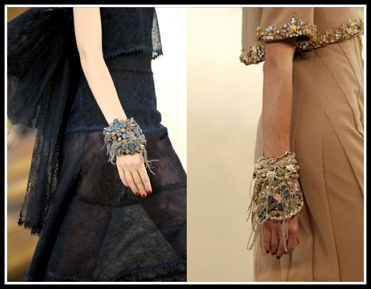 I've been swooning over these bracelets since I first saw them on the FW 2010/2011 Haute Couture runway. There so pretty I don't even know which one to choose. Maybe I'll just have to settle on two and wear them on each wrist like the girls did in the show. What do you think? Great idea, no?